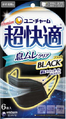 超快適マスク息ムレクリアブラックふつう不織布マスク(6枚入)